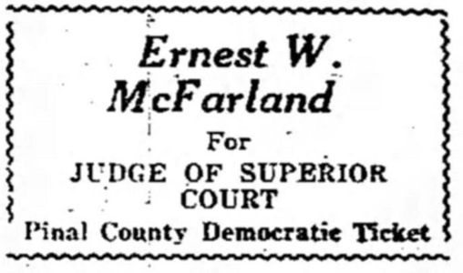 In 1934, Mac ran again for the position of Superior Court Judge of Pinal County. The results were different and Mac defeated the incumbent Ernest L. Green by a significant margin. While Mac returned to the courtroom, Green returned to private practice and, in 1936, joined the McFarland and Fulbright law firm.