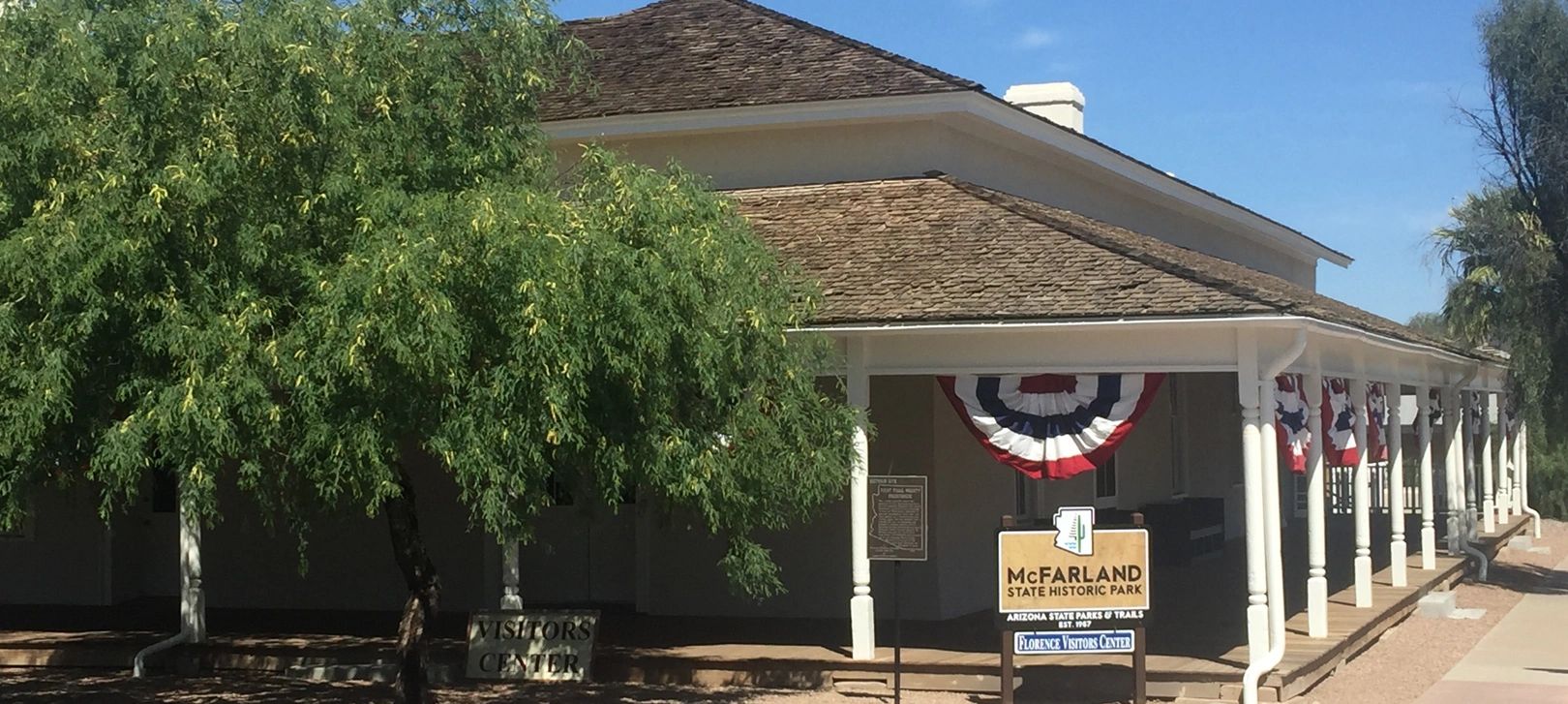 Nestled in the Town of Florence, McFarland State Historic Park is the oldest standing courthouse in Arizona. Listed on the National Register of Historic Places, the park dates back to the Arizona Territorial period in 1878. The rustic adobe courthouse, office, and jail have plenty of stories to tell about frontier justice in the Old West!